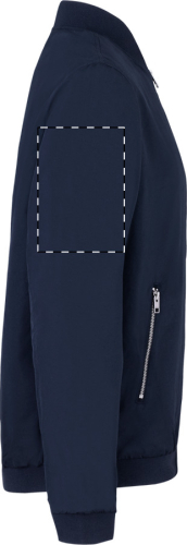 Bomber in 100% poliestere resistente all'acqua e al vento, con tasche laterali chiuse da zip.