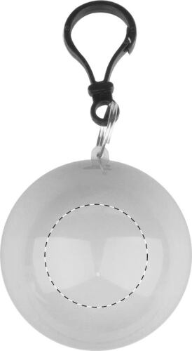 Impermeabile poncho per bambini ripiegato in una pallina con portachiavi e moschettone.