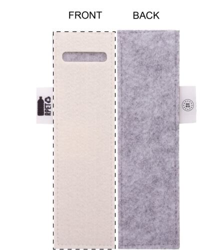 Contenitore per penna in feltro RPET personalizzabile a colori sulla parte frontale con etichetta RPET. Il prezzo include la stampa in sublimazione. MOQ: 50 pz