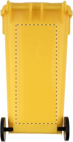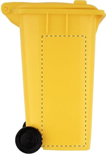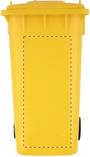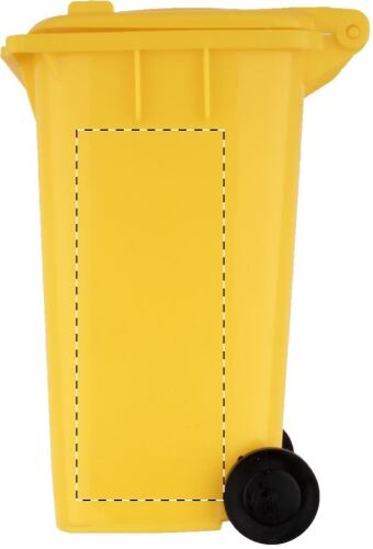 Porta penne in plastica a forma di bidone dell'immondizia.