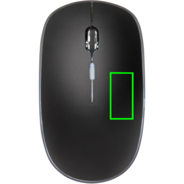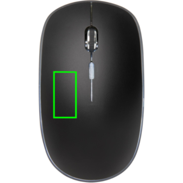 Mouse wireless dal design confortevole e con l'opzione del logo che si illumina incidendolo sul mouse per far meglio risaltare il tuo marchio. Include una batteria ricaricabile al litio da 300mAh che si ricarica in 3 ore. Velocità di connessione 125 HZ tramite chiave di sicurezza USB integrata. Dispone di tasto destro, tasto sinistro e rotellina centrale. La sensibilità del mouse può essere regolata a seconda delle preferenze d'utilizzo. Compatibile con le più recenti versioni di sistemi operativi Windows e Mac.