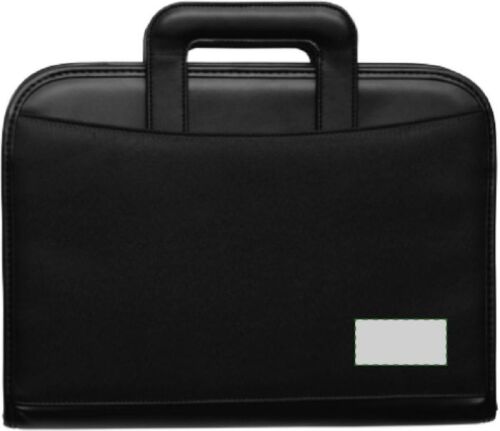 Portablocco formato +/- A4, maniglie retrattili, pannello interno attrezzato, vari scomparti, calcolatrice 8 cifre a doppia alimentazione, vano trasparente, chiusura lampo, passante porta penna, blocco incluso, in microfibra