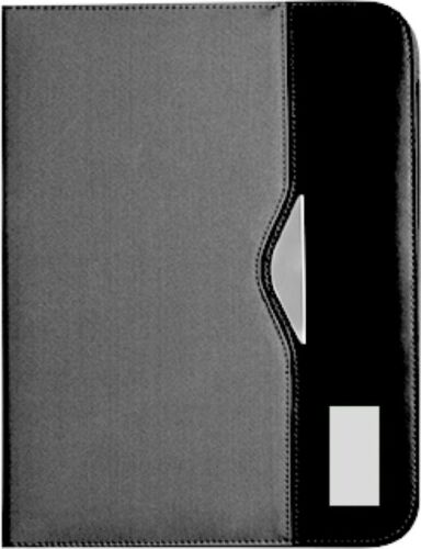 Portablocco formato +/- A4, scomparto grande sul lato sinistro, vano portabiglietti, passante elasticizzato per penna targhetta in metallo, blocco incluso, in nylon 600 D