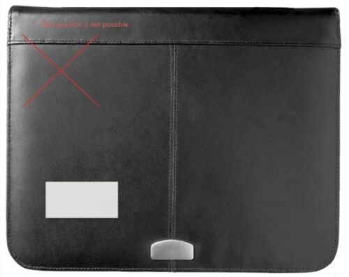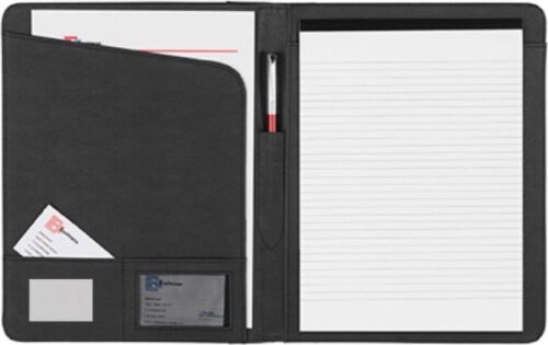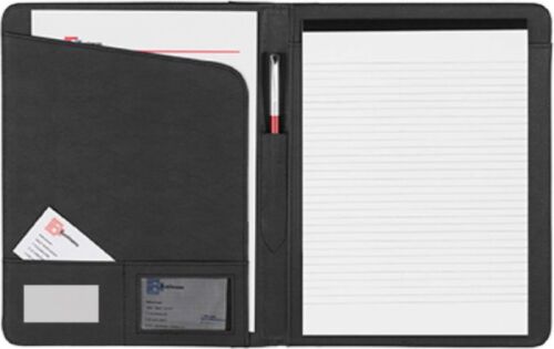 Portablocco formato +/- A4, targhetta in metallo, blocco da 25 pagine a righe incluso, passante per penna (non inclusa), vari scomparti, in similpelle