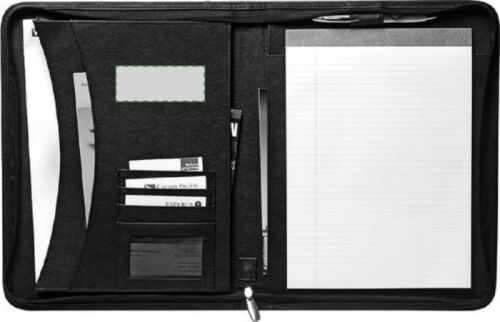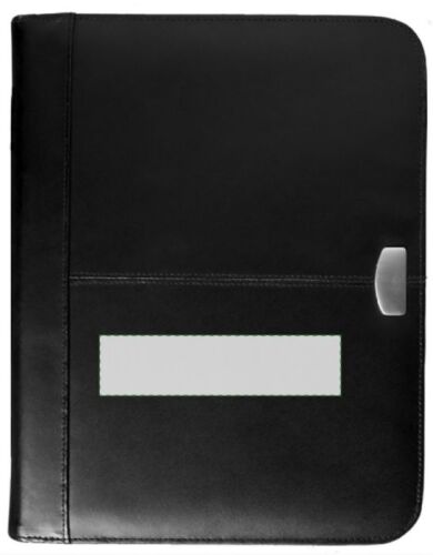 Portablocco formato +/- A4, chiusura a lampo, targhetta in metallo, blocco da 30 pagine a righe incluso, passante per penna (non inclusa), vari scoparti, chiusura lampo, in similpelle