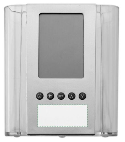 Portapenne da tavolo con orologio, funzione sveglia, calendario e termometro, batterie incluse