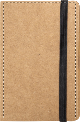Porta biglietti in cartoncino kraft con 25 foglietti adesivi gialli, 125 segnapagina (in 5 colori) ed elastico di chiusura.