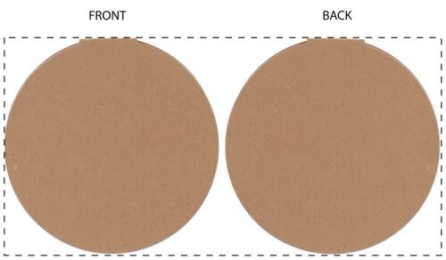 Blocco di 50 foglietti adesivi di forma rotonda con copertina in cartoncino kraft. Il costo comprende la stampa a colori della copertina esterna. MOQ: 100 pezzi.
