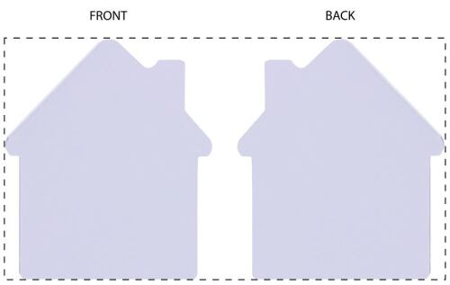 Blocco di 50 foglietti adesivi a forma di casa con copertina in cartoncino. Il costo comprende la stampa a colori della copertina esterna. MOQ: 100 pezzi.