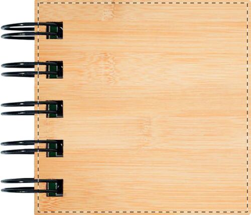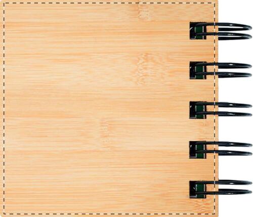 Quaderno a spirale con copertina in bambù, con 75 fogli adesivi grandi (in 3 colori diversi) e 125 piccoli (in 5 colori diversi).
