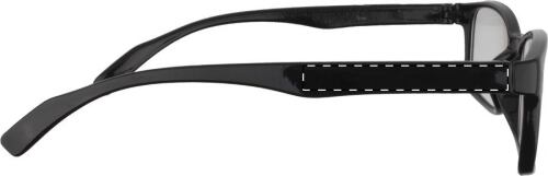 Occhiali da lettura in plastica con correzione +1,5 diottrie, con astuccio morbido.