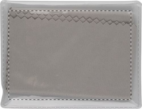 Panno per la pulizia occhiali in microfibra (230 g/m²) in bustina PVC. Dimensioni del panno 150×150 mm.