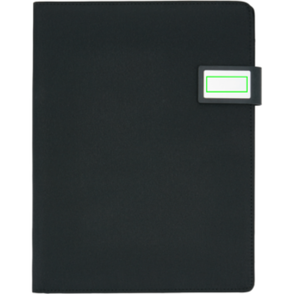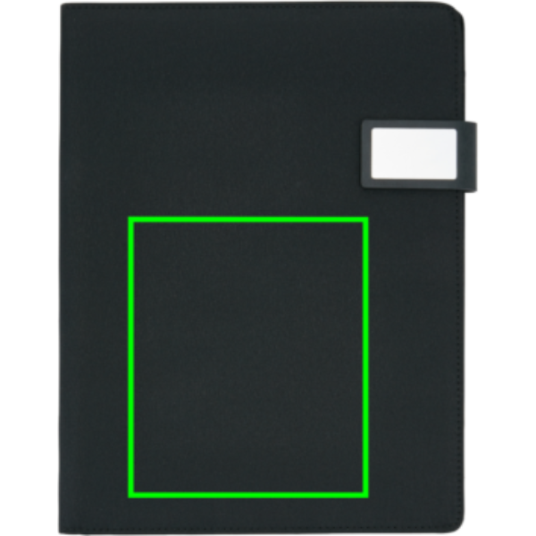 Portablocco A4 con chiusura magnetica. Interno: stand per tablet/smartphone, porta telefono con finestrella trasparente. Adatto a tutti più comuni smartphone incluso iPhone6 e Samsung S6. Tsca porta documenti, 2 taschini porta carte di credito e anello porta penna. Include un blocco A4 con 20 fogli.