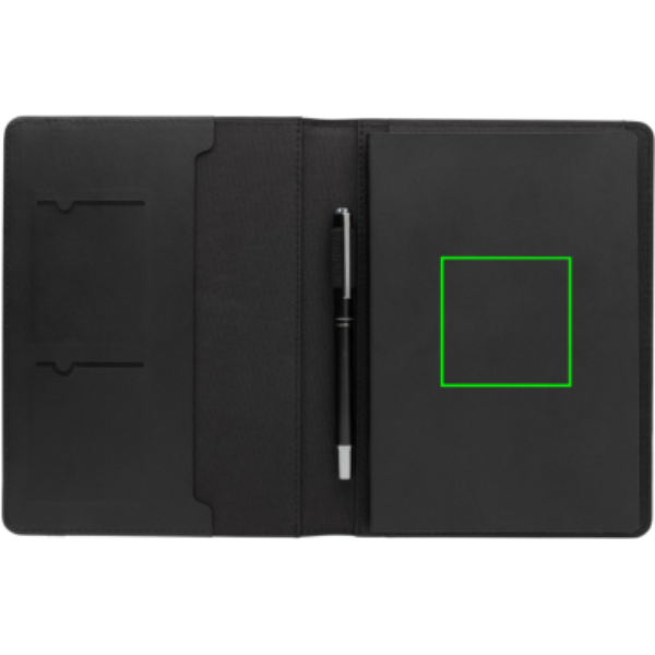Migliorate la vostra immagine professionale grazie a questo portadocumenti A5 realizzato in poliestere riciclato e PU riciclato certificato RCS. All'interno sono presenti 3 scomparti portacarte, un passante per la penna e una tasca portadocumenti A5. Rimanete organizzati grazie al taccuino A5 ricaricabile con carta FSC® mix color crema e grammatura di 80 g/m². Confezionato in una scatola regalo FSC®, questo portafoglio combina stile e funzionalità in modo perfetto. Realizzato in poliestere riciclato al 100% con il tracciante AWARE™.