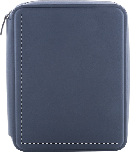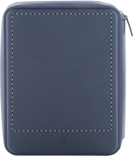 Elegante cartellina portadocumenti in pelle PU riciclata, formato A5, con cerniera e blocco di 64 fogli a righe in carta riciclata. Dotata di molteplici tasche interne per carte e documenti.