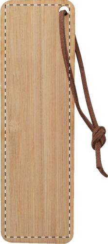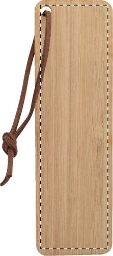 Segnalibro in compensato di bambù con cordino in pelle PU.