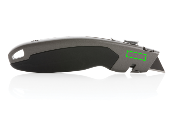 Taglierino professionale realizzato in resistente lega di zinco. E' progettato per darti una presa comoda durante l'utilizzo. Include funzione di lama autoretrattile e di blocco. La lama professionale SK4 assicura resistenza e affilatura di lunga durata. Questo taglierino è ideale per l'uso quotidiano. Confezionato in lussuosa confezione regalo. Innclude 3 lame di ricambio.