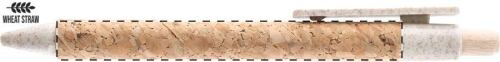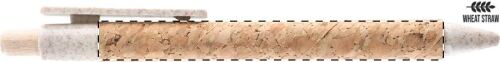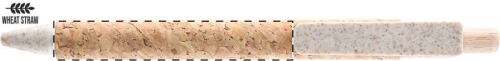 Quaderno formato A5 con copertina in sughero naturale e cotone con 80 fogli bianchi, penna a sfera con parti in plastica di paglia di grano e sughero e refill nero.