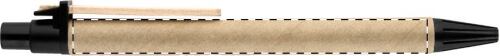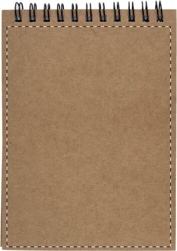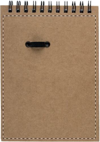 Blocco note a spirale con 60 fogli a righe, copertina e penna a sfera (refill blu) in carta riciclata.