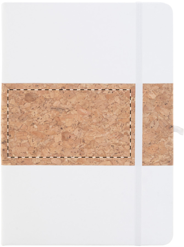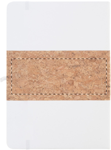 Quaderno formato A5 con copertina in sughero naturale e pelle PU riciclata, 80 fogli a righe in carta riciclata, segnalibro in colore coordinato, elastico e portapenne.