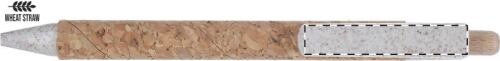 Quaderno con copertina rivestita in sughero naturale con 80 fogli bianchi, formato A5. Compresa penna a sfera in plastica di paglia di grano ecologica ricoperta di sughero con refill nero. In scatola di carta kraft.