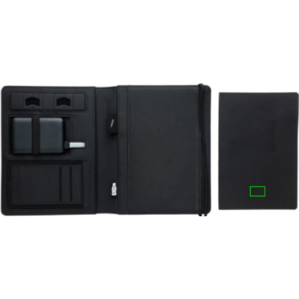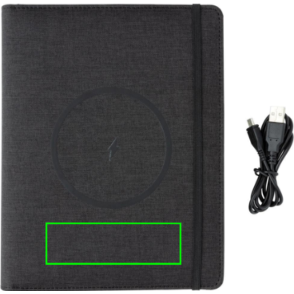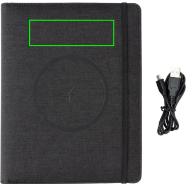 Questo portablocco ti consente di presentarti con stile alle tue riunioni. Include un caricatore wireless nella copertina per smartphon Android di ultima generazione e iPhone 8 o versioni successive. Versioni precedenti di smartphone o tablet potranno essere ricaricati tramite la porta USB della poweerbank integrata da 5.000 mAh. Input: 5.0V/2.1A. Output 1: 5.0V/2.1A. Output 2: 5.0V/2.1A. Output wireless: 5W. Design registrato®
