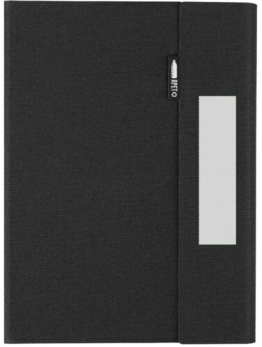 Portablocco in rPET formato +/- A5, finiture saldate, include notebook con 64 pagine a righe, carta 70 g/m², scomparti vari, supporto per il telefono, chiusura magnetica, custodia singola in carta kraft