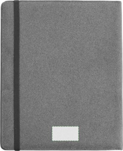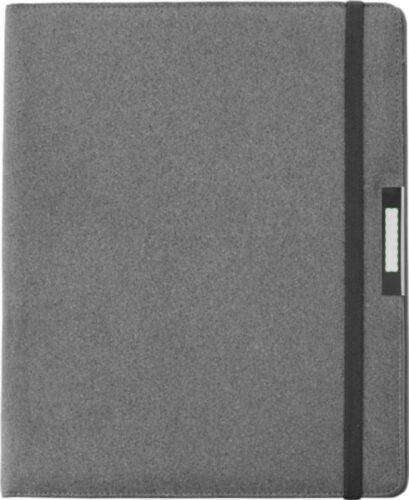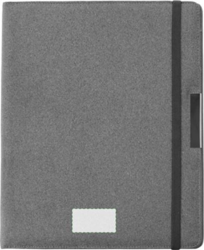 Portablocco formato +/- A4, con targhetta in metallo personalizzabile ad incisione laser, taschina porta carta, passante elastico per penna, blocco con pagine a righe, sughero esterno, PU