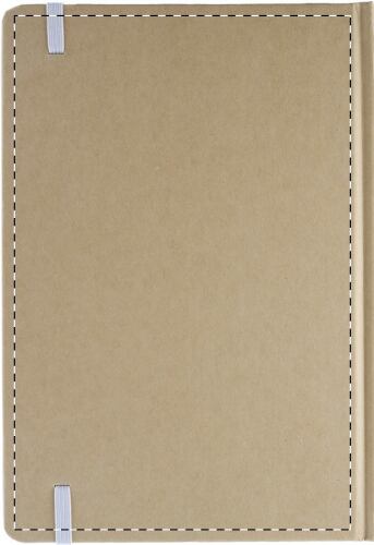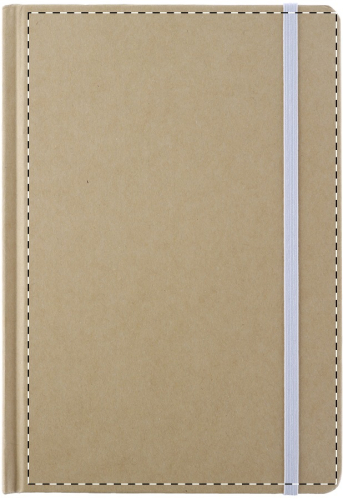Quaderno con copertina in cartoncino e 100 fogli bianchi, segnalibro colorato ed elastico in gomma.