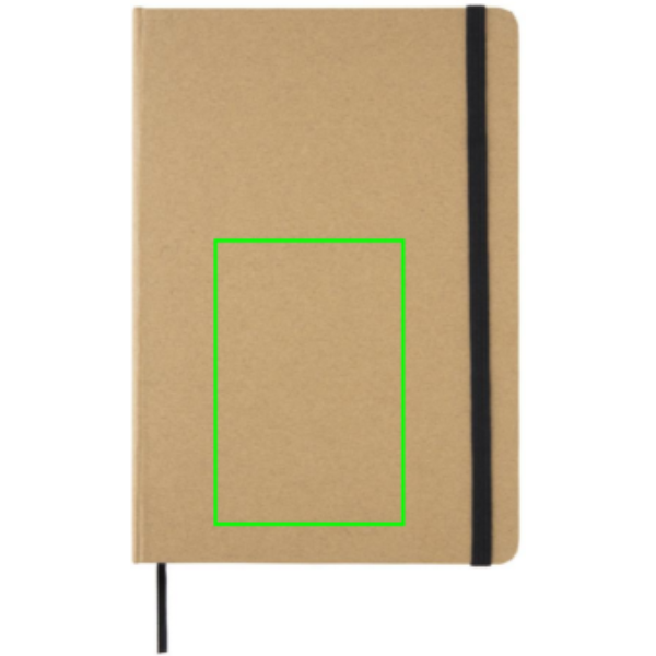 Taccuino in carta kraft. 72 pagine/144 facciate da 70 g/m2. Pagine color crema. Include elastico e nastro segna pagina.