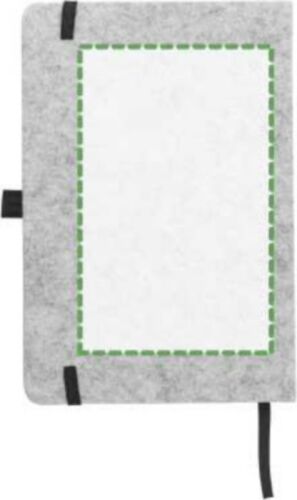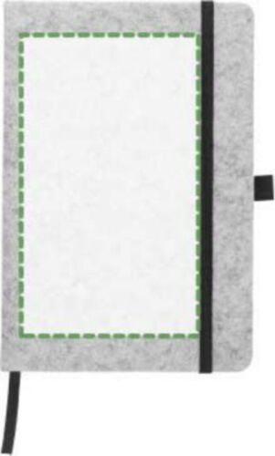 Taccuino in feltro rPET, formato +/- A5, 160 pagine a righe, passante per penna, elastico e segnalibro