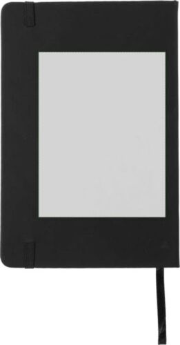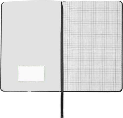 Taccuino in PU, formato +/- A5, 96 pagine a quadretti da 5 mm senza cornice, include segnalibro a nastro ed elastico sulla copertina