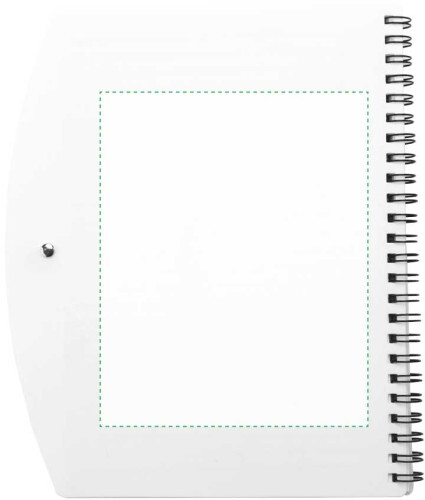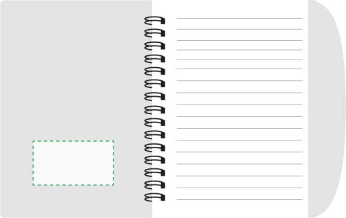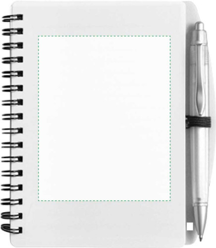 Taccuino in PP, formato +/-A6, 65 pagine a righe, dotato di penna a sfera in ABS con clip in metallo, refill blu