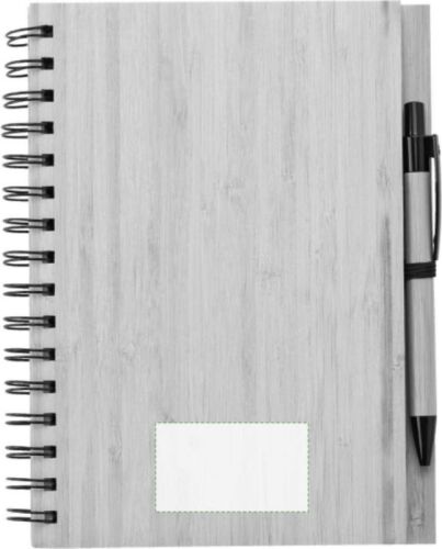 Taccuino in bambù A5 con 80 fogli a righe, comprensivo di penna a sfera in bambù con puntale e punta in ABS, refill blu