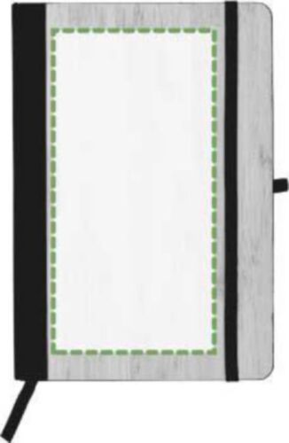 Taccuino in PU con copertina in bambù, formato +/- A5, 96 pagine a righe, ed elastico.