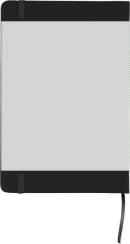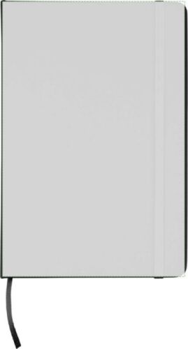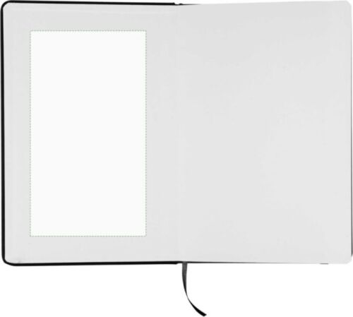 Taccuino in rPET, formato +/- A5, copertina rigida in PU rPET, contenente 80 pagine a righe g/m2, elastico e segnalibro in tinta, include logo ‘PU riciclato’ stampato a caldo sul retro.