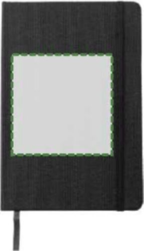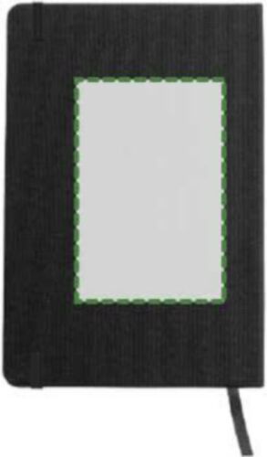 Taccuino in rPET e PU, formato +/- A5, 80 pagine bianche, elastico e segnalibro in tinta, carta 70 g/mq