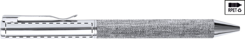 Quaderno formato A5 con copertina in poliestere 300D RPET, 100 fogli a righe, elastico di chiusura in gomma, penna a sfera in metallo con rivestimento in poliestere RPET e refill blu.