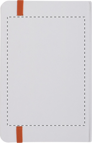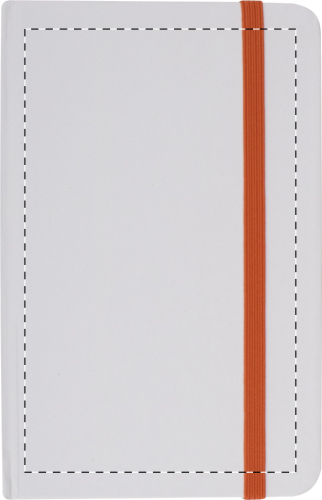 Quaderno con copertina in cartoncino da 80 fogli bianchi ed elastico chiusura colorato. Formato A6.