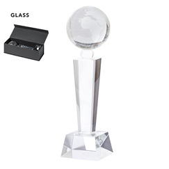 Trofeo - Coppa in vetro con riproduzione del pianeta terra e base resistente. Appositamente progettato per la stampa laser e confezionato in una custodia protettiva in cartone resistente con chiusura magnetica e interno in schiuma fustellata.