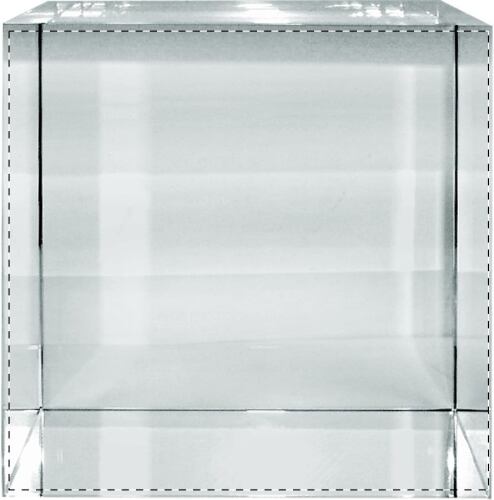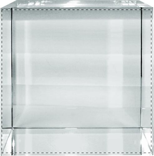 Cubo in vetro. Consegnato in confezione regalo di cartoncino blu con inserto in seta e chiusura magnetica.