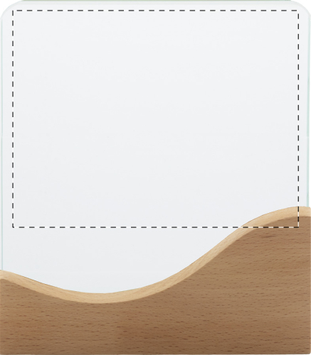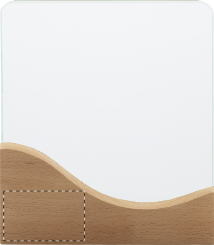 Trofeo in vetro con base in legno di faggio, completo di confezione regalo in cartoncino kraft.